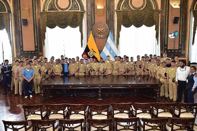 Emocionados, 120 estudiantes de bachillerato del Liceo Naval y de la Academia Naval Almirante Illingworth (ANAI) conocieron la historia de Guayaquil plasmada en vitrales, frescos y murales del Salón José Joaquín de Olmedo y Maruri, en el Palacio Municipal.