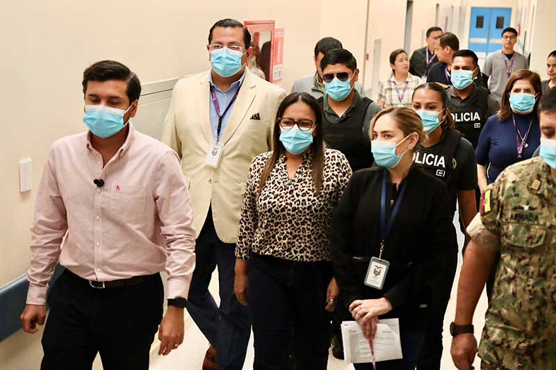La ministra de Gobierno, Zaida Rovira, y el ministro de Salud, Jimmy Martin, recorrieron este lunes los hospitales Guasmo Sur, Monte Sinaí y Universitario de Guayaquil, que desde la semana pasada se encuentran bajo la administración de gerentes navales designados por el Ejecutivo.